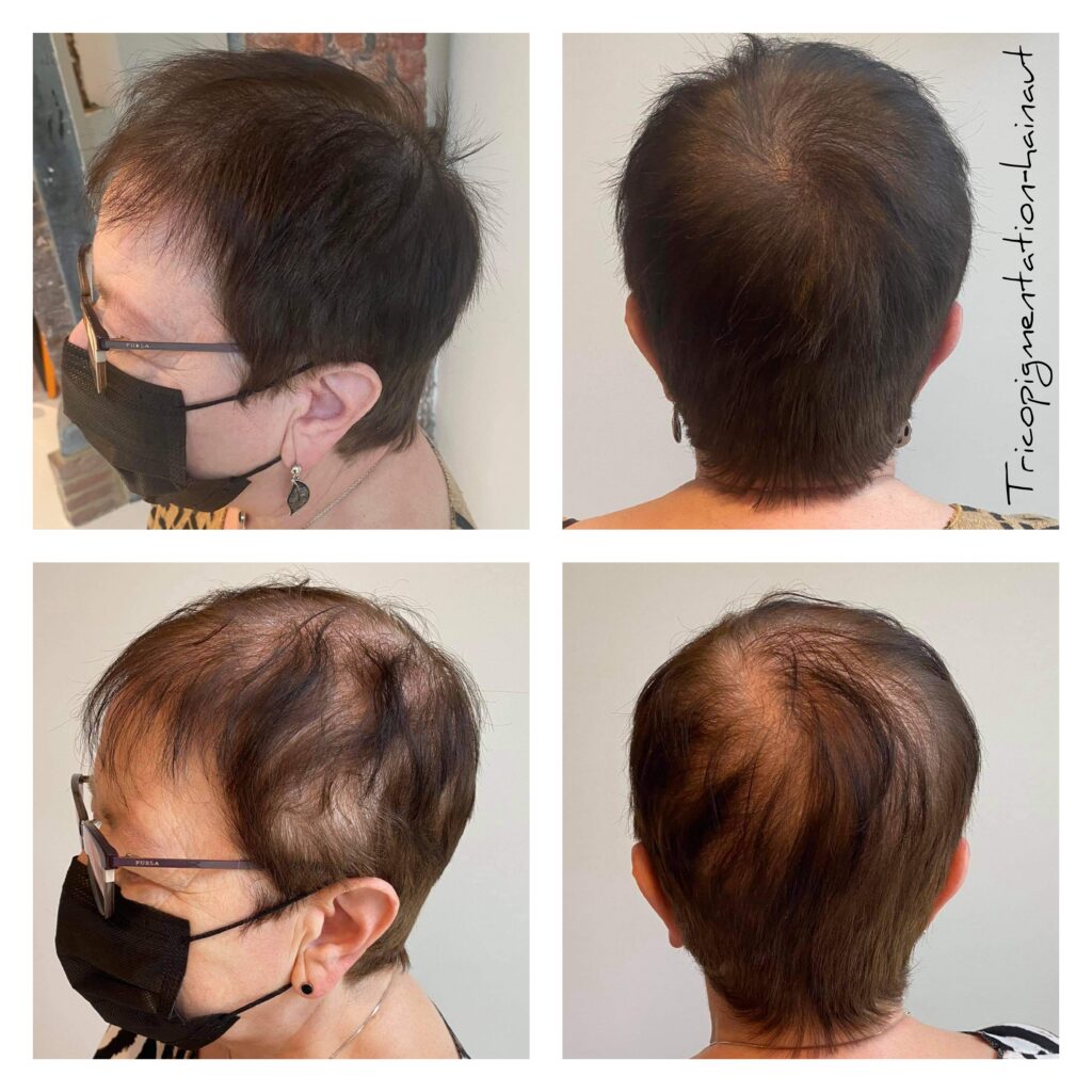 Après les premières séances, l’effet est visible quasi immédiatement — pas d’attente longue comme avec des traitements capillaires ou des greffes. Les pigments durent plusieurs années : quelques retouches suffisent tous les 2 à 4 ans selon les cas.