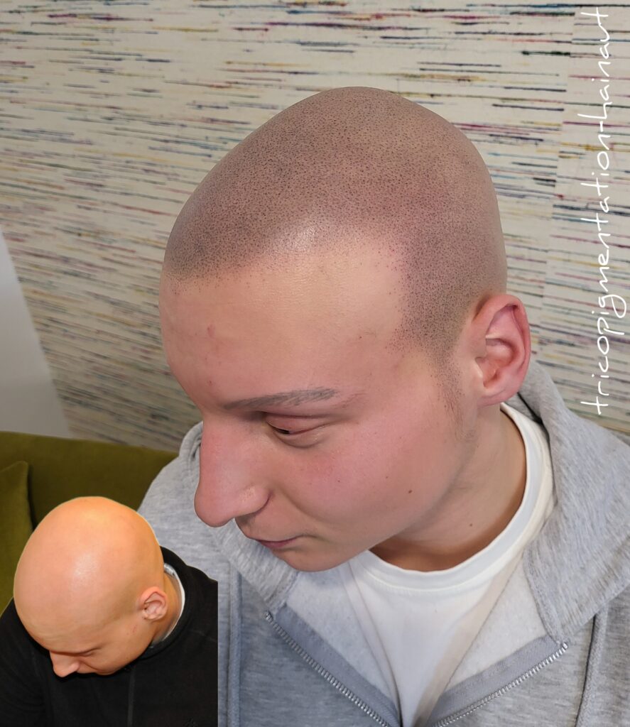 👉 Photo avant/après – Micropigmentation alopécie universelle chez un homme